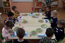Бүген 13-нче номерлы икенче кечкенәләр төркем балалары Россия Федерациясе Дәүләт флагы көне алдыннан шулай ук безнең иленең төп символы белән таныштылар. Алар кисеп-ябыштыру эшчәнлегендә бик теләп катнаштылар , флагның төсләрен һәм аларның урнашуын истә калдырдылар. Ак төс – ул азатлык һәм мөстәкыйльлек, зәңгәр – ышаныч һәм рухият, кызыл – бөеклек һәм көч-куәт.