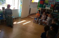 Атна дәвамында тәрбияче Гильманова Р.М. балаларны әкиятләр, шигырьләр белән таныштырды, әсәрләргә иллюстрацияләр күрсәтте. Дәрес өчен тәрбияче презентация, күрсәтмә материал кулланды: аның гаиләсе һәм нянясының портретлары, иллюстрацияләр, А.С. Пушкин булган шәһәрләрне һәм аның һәйкәлләре белән таныштырды. Балалар бакчасында А.С. Пушкин иҗатына кечкенәдән үк мәхәббәт тәрбияләнә.
