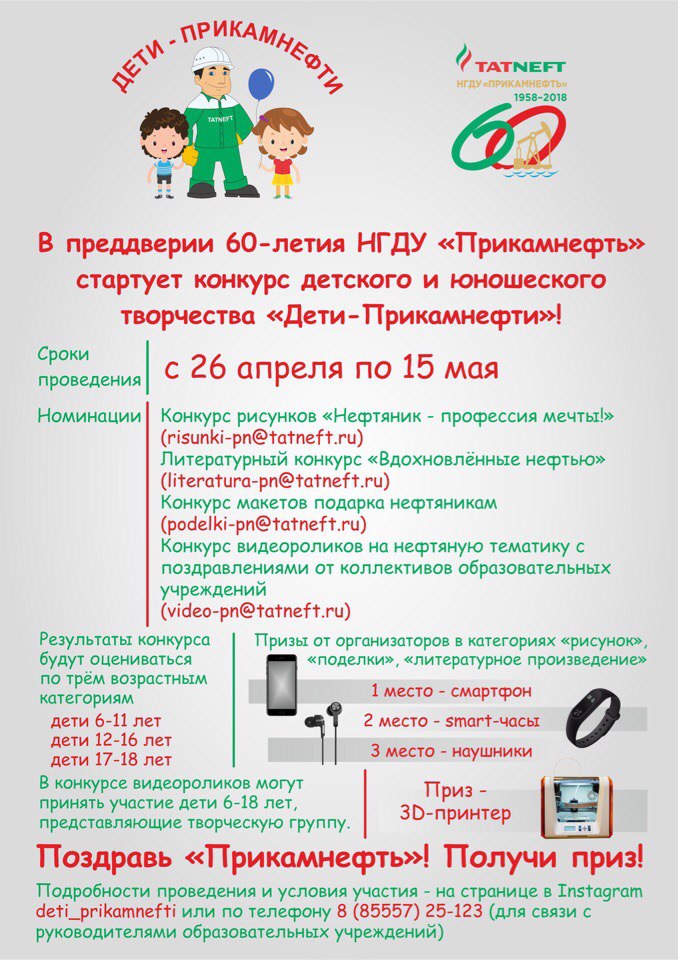НГДУ "Прикамнефть" идарәсенең 60 еллык юбилее уңаеннан " Прикамнефть балалары" балавлар һәм яшүсмерләр иҗат бәйгесе старт алды.