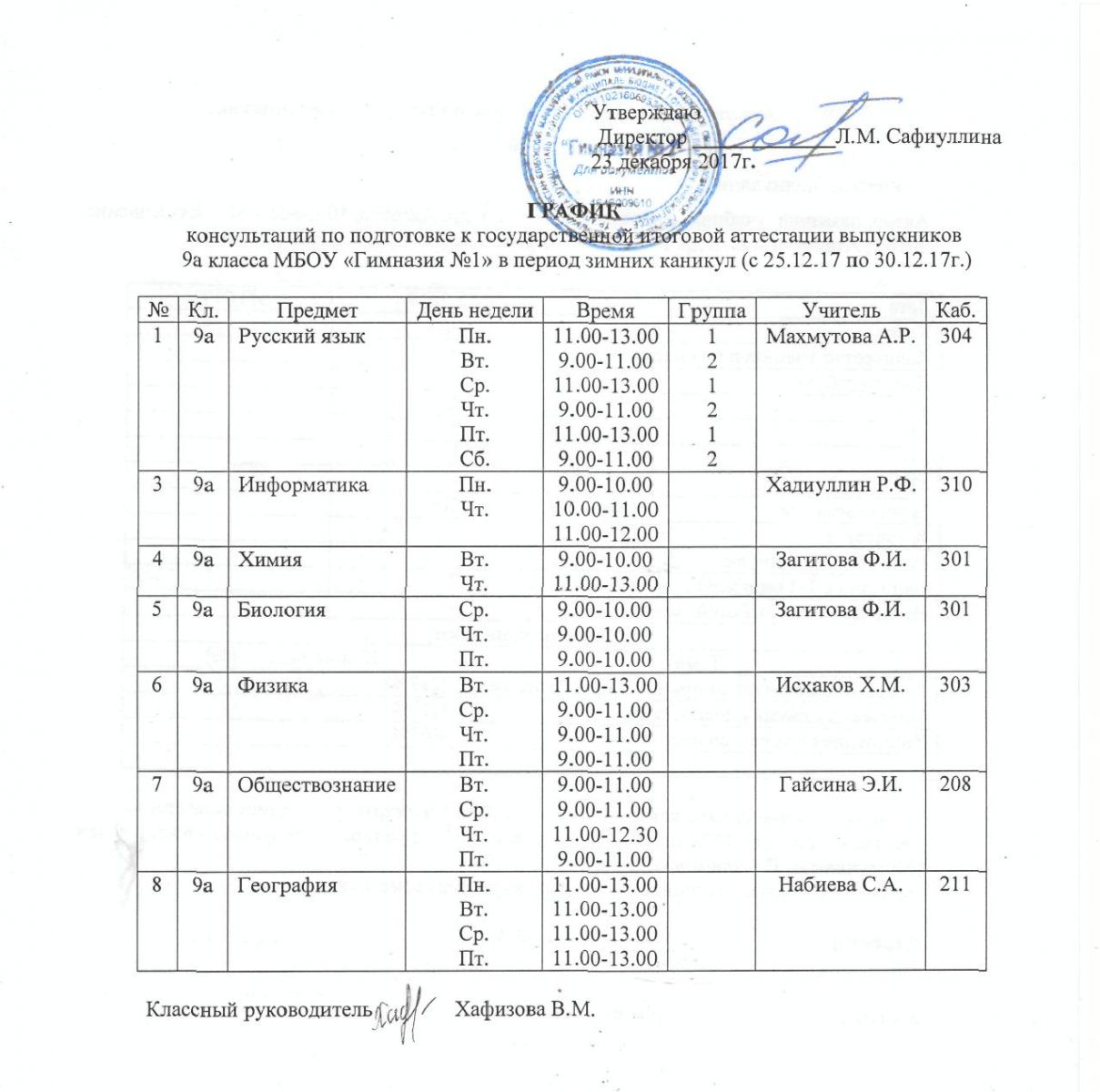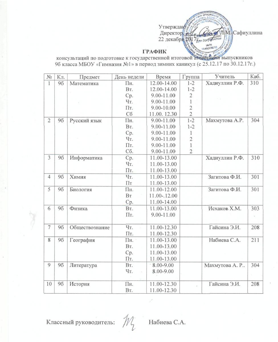 С 25 декабря, во время зимних каникул, в гимназии будут проводиться занятия по подготовке к ГИА 2018 для обучающихся 9 и 11 классов