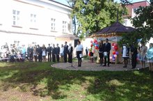 Каждый год наша гимназия славилась своим пришкольным участком. Так и в этом году все цветники участка были посвящены одной теме "Салют Победы". Все цветники получились очень красочными и цветными, а перед входом в гимназию учителями и учениками был сделан рисунок из камней в виде георгиевской ленты и голубя, который символизирует мир.