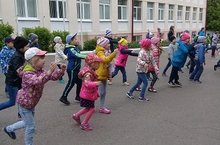 Ребята из пришкольного лагеря учатся танцевать. Два раза в неделю желающие собираются на танцевальный час. Это очень весело и интересно!