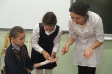 Сегодня, в рамках месячника безопасности в 4Б класс была приглашена школьная медсестра Шайгалямова Гульсина Каримовна, которая провела с детьми практические занятия по правилам перевязки и обработки ран. Занятие было интересным и полезным.