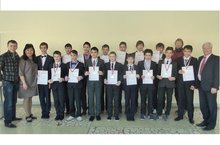 Вчера в гимназии прошло награждение победителей соревнований по футболу на снегу. Наша команда стала первой. Молодцы! -