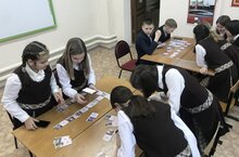 В рамках месячника патриотического воспитания ученики 5 Б класса нашей гимназии приняли участие в патриотической игре QR-код домино «Герои Отчества».