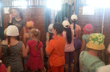 Вчера дети, отдыхающие в пришкольном лагере "Радуга", посетили с экскурсией конно-спортивную школу "Кентавр", Они увидели различные породы лошадей, им представили показательное выступление.на манеже. Ребята были очень довольны увиденным и порадовались общению с животными.