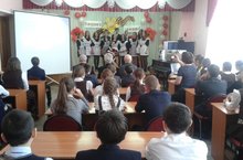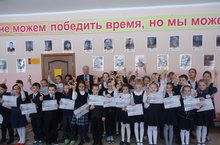 8 апреля в 10.00 в актовом зале гимназии прошел Урок Победы. Гостями были ветераны МВД, члены городского совета ветеранов подполковник милиции Сафронов Э.А и майор милиции Красильников М.М. Мероприятие открыл школьный хор "Наследники Победы" песней "Прадедушка", ученики 5 б класса Дарина Мороз и Виолетта Гибадуллина читали стихи о войне, ученики 11 б класса исполняли песни времен Великой Отечественной войны и вместе с ними пел весь зал Вниманию ребят была представлена познавательная презентация о Великой Отечественной войне, о трудовом подвиге народа на фронте и в тылу, городах-героях. Ветераны поведали детям о всех трудностях в военный и послевоенный период, которые они испытали на своих детских плечах. Ими был дан наказ молодому поколению и зачитано обращение Президента РТ Р.Н. Минниханова к подрастающему поколению. Урок прошел на одном дыхании и на всем его протяжении все участники повторяли девиз урока "Гордимся, помним!" На уроке был дан старт месячнику Победы "Лента Победы"Завершением мероприятия стало всеобщее исполнение песни "День Победы".