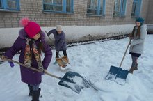 Сегодня убирались на территории школы.