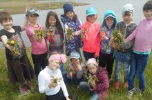 Сегодняшний день пришкольного лагеря и лагеря труда и отдыха" Солнышко" назывался "Зеленая планета". С учащимися проведена беседа " Учиться у природы, беречь природу", конкурс поделок из природного материала "Природа и фантазия". Дети участвовали в оформлении опытного участка начальных классов.