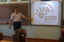 В рамках месячника , приуроченного к Международному дню Детского телефона доверия, в 5-11 классах прошли классные часы на тему " Мы поможем тебе стать самостоятельным" . Детям рассказали об истории детского телефона доверия, о том,как он работает и для чего предназначен. Учащихся мотивировали на обращение к детскому телефону доверия .