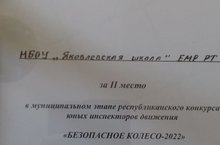 Безнең мәктәп командасы "Куркынычсыз тәгәрмәч" республика конкурсының муниципаль этабында катнашты һәм 2 урынны яулады. Команда әгъзалары Шабанов Т., Чернышев Д. Пузырева Н. җиңүләре белән котлыйбыз!
