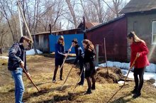 "Ветеран янәшәдә яши!" акциясе кысасында укучылар тыл ветераны Евстафьева Н.Н.га булыштылар, өй яны территориясен чистарттылар.