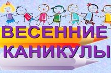 Весенние каникулы продолжатся с 23.марта 2019 года по 31 марта 2019 года .