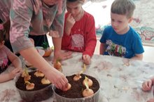 Когда за окном тает снег, а до первой зеленой травки еще долго, так приятно увидеть на подоконнике свежую зелень! Огород на подоконнике в группе является очень интересным занятием, особенно ранней весной, когда хочется не только отведать свежие дары природы, но и посмотреть на цвета зелени. И нет ничего приятнее, когда первая зелень поспевает прямо у ребят на глазах. Это может быть лук.\Тәрәзәдә кар эреп, беренче яшел үләнгә кадәр әле озак, тәрәзә төбендә саф яшел тәмләткечне күрү бик күңелле! Тәрәзә астындагы бакча бик кызыклы шөгыль, бигрәк тә иртә язда, табигать бүләкләреннән авыз итеп кенә калмыйча, яшеллекнең төсләренә дә карыйсы килә. Беренче яшел тәмләткечләрнең күз алдында өлгерүе дә күңеллерәк нәрсә юк. Бу, бәлки, суган.