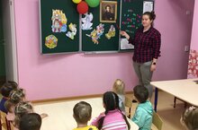 Было проведено занятия для детей младшей,средней и подготовительных групп на тему "Международный день русского языка". На занятия дети с помощью таких игр,как "Бабочка и цветы", "Подбери слово" и "Слова наоборот" упражнялись Было проведено занятия для детей младшей,средней и подготовительных групп на тему "Международный день русского языка". На занятия дети с помощью таких игр,как "Бабочка и цветы", "Подбери слово" и "Слова наоборот" упражнялись в подборе синонимов, антонимов толковании слов, понимании переносного смысла пословиц, разгадывании.Познакомили детей с некоторыми страницами биографии поэтаРазвитили чувства патриотизма, любви к Родине через творчество А. С. Пушкина с помощью чтения отрывка сказки " О мертвой царевне и семи богатырях"./Кече,урта һәм мәктәпкә әзерлек төркемнәре балалары өчен "Халыкара рус теле көне"темасына дәресләр үткәрелде. Дәрестә балалар "Күбәләк һәм чәчәкләр", "сүзне сайла" һәм "сүзләр киресенчә" кебек уеннар ярдәмендә кече,урта һәм әзерлек төркемнәре балалары өчен "Халыкара рус теле көне"темасына дәресләр үткәрелде. Дәрестә балалар "Күбәләк һәм чәчәкләр", "сүз сайла" һәм "киресенчә" кебек уеннар ярдәмендә синонимнар, антонимнар, сүзләрнең мәгънәләрен аңлау, әйтемнәрнең күчмә мәгънәсен аңлау күнектеләр. Балаларны шагыйрьнең биографиясенең кайбер битләре белән таныштырдылар Патриотизм, туган илгә мәхәббәт хисләре А.С. Пушкин иҗаты аша "үле патшабикә һәм җиде баһадир"әкиятеннән өзек уку ярдәмендә үстерелде. -