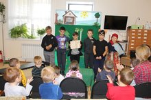 Ребята кукольного кружка с театра книги «Со страниц на сцену» показали для воспитанников детского сада кукольный театр и инсценировку про кошку и бабушку./"Сәхнәгә биттән" китап театрыннан курчак түгәрәге балалары балалар бакчасында тәрбияләнүчеләр өчен курчак театры һәм мәче һәм әби турында инсценировка күрсәттеләр.