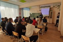 Сотрудники Набережночелнинского филиала УВО Университета управления "ТИСБИ" провели сегодня профориентационную беседу со школьниками 8-11 классов и рассказали обо всех особенностях поступления и обучения в университете/"ТИСБИ" Идарә университетының Яр Чаллы филиалы хезмәткәрләре бүген 8-11 сыйныф укучылары белән һөнәри юнәлеш бирүче әңгәмә үткәрделәр һәм университетка керү һәм укуның барлык үзенчәлекләре турында сөйләделәр.
