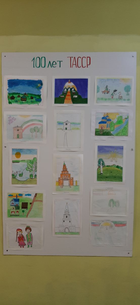"Моя Родина - Татарстан" - так называется выставка детских рисунков, приуроченная к 100-летию образования ТАССР. В ней отобразились вся красота и неповторимость нашей республики. Целью выставки является воспитание у детей чувства патриотизма, любви к родному краю, приобщение к его богатой истории./ "Минем Ватаным - Татарстан" - ТАССР төзелүнең 100 еллыгына багышланган балалар рәсемнәре күргәзмәсе.