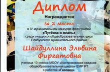 Ученица 10 класса заняла 2 место в IV муниципальном конкурсе фотографий «Путёвка в жизнь», который проходил в рамках проекта «Профориентационный кинотеатр «Ориентир»/10 нчы сыйныф укучысы "Ориентир" һөнәри юнәлеш бирү кинотеатры" проекты кысаларында узган «тормышка юллама» дип аталган IV муниципаль фотографияләр конкурсында 2 нче урынны алды.