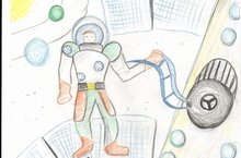 Конкурс рисунков "День Космоса" 12.04.2018 Первое место занял ученик 7 класса Любимов Павел