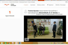 "Снимаем буктрейлер по Чехову" 28.02.2017 Классный руководитель 2 класса Бузова Г.Н вместе со своими учениками участвовала во всероссийском конкурсе"Снимаем буктрейлер по Чехову" и получили сертификат.Видео можно посмотреть по ссылке https://lit.drofa-ventana.ru/chitatel-110302/
