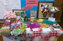 На первом этаже в фойе школы организована выставка творческих работ мам, бабушек учащихся. -