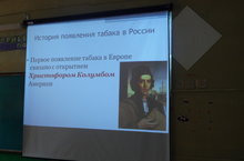 В рамках акции «Жизнь без наркотиков!» в пришкольном лагере воспитатель Хадиева Р.М. провела беседу «Безвредного табака не бывает», в ходе которой ребята узнали об истории приобщения европейцев к курению и спорили по вопросу: курение-это традиция или нет, если учесть, в Европе начали курить в XVIв., а в России-в XVIII в. -