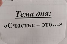 Тема сегодняшнего дня психологической акции — «Счастье — это...» У всех разное понимание этого слово: счастье — это математика, счастье — это физическая культура, счастье — это когда все поют, счастье — это когда нет страха и ты научился плавать, счастье — это когда я радуюсь и приезжаю к бабушке и т.д. / Бүгенге психологик акциянең темасы «Бәхет — ул...» Һәркемнең бу сүзне аңлавы төрле: бәхет — ул математика, бәхет - ул физик культура, бәхет — ул барысы да җырлый, бәхет — ул чакта курку юк һәм син йөзәргә өйрәнгәндә, бәхет — ул мин шатланам һәм әбиемә кайтканда һ. б.