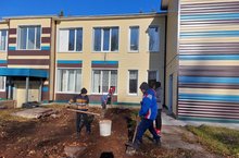 Пролетело лето, на дворе стоит золотая осень. Все ребята радуются последним тёплым денькам и вместе с педагогами с удовольствием убрали листву, вскопали клумбы, привели в порядок школьную территорию, подмели площадку перед школой. Вот и сегодня все потрудились на славу. Убрана листва с территории, срезан сухостой с клумб перед главным входом в школу, собран мусор. / Җәй үтеп китте, ишегалдында алтын көз тора. Барлык балалар да соңгы җылы көннәргә шатланалар һәм педагоглар белән бергә яфракларны бик теләп җыештырдылар, клумбалар казып, мәктәп территориясен тәртипкә китерделәр, мәктәп каршындагы мәйданчыкны себерделэр. Менә бүген дә барысы да бик тырышып эшләделәр. Мәктәп яны территориясеннән яфраклар чистартылды, төп керү урыны алдында коры-сары киселде, чүп-чар җыелды.