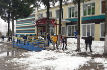Учащиеся второго класса активно оказывают тимуровскую помощь престарелым людям, труженикам тыла и детям войны. Сегодня помогли раскидать снег вдове участника ВОВ Жаровой Марие Николаевне. / Икенче сыйныф укучылары өлкән яшьтәге кешеләргә, тыл хезмәтчәннәренә һәм сугыш балаларына тимурчылык ярдәме күрсәтәләр. Бүген Бөек Ватан сугышы ветеранының тол калган хатыны Жарова Мария Николаевнага кар таратырга булыштылар.