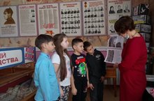 Руководитель школьного музея провела учащимся музейный урок, посвященный детям блокадного Ленинграда, Сталинградской битве. Рассказала о доме Павлова. / Мәктәп музее җитәкчесе укучыларга Ленинград блокадасында калган Ленинград сугышы балаларына багышланган музей дәресе үткәрде. Павлов йорты турында сөйләде.