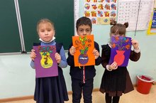 Сегодня, после уроков, пока ждали автобус, мы с обучающимися 1 классов сделали картины из картона и пластилина.