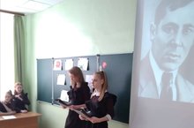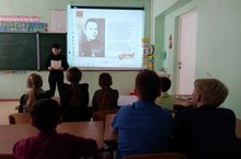 В рамках мероприятий, посвященных дню рождения поэта, Героя Советского Союза Мусы Джалиля, прошел литературно-музыкальный час. Учащиеся узнали о непростой жизни поэта, о его творчестве. В исполнении детей прозвучали стихи поэта-героя и песни, написанные на его слова. Электронная презентация, кадры военной кинохроники, рисунки и плакаты учащихся дополняли устную информацию наглядными материалами. Была оформлена книжная выставка "По следам поэта-героя", на которой были представлены книги поэта./Советлар Союзы Герое Муса Җәлилнең туган көненә багышланган чаралар кысаларында «Гомрем минем моңлы бер җыр иде, үлемем дә яңрар җыр булып” дигән әдәби-музыкаль сәгать узды. Укучылар шагыйрьнең катлаулы тормышы, аның иҗаты турында белделәр. Балалар башкаруында герой-шагыйрьнең шигырьләре һәм аның сүзләренә язылган җырлар яңгырады. Электрон презентация, хәрби кинохроника кадрлары, укучыларның рәсемнәре һәм плакатлары телдән мәгълүматны күрсәтмә материаллар белән тулыландырдылар. "Герой-шагыйрь эзләре буйлап" дигән китап күргәзмәсе оештырылды, анда шагыйрьнең китаплары тәкъдим ителде. -