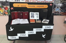На втором этаже школы оформлена книжная выставка «И книга память оживит...», посвященная 75-летию Победы в Великой Отечественной войне 1941-1945г. / Мәктәпнең икенче катында ,1941-1945 еллардагы Бөек Ватан сугышында Җиңүнең 75 еллыгына багышланган «Китап та җанландырачак...» дип исемләнгән китап күргәзмәсе оетырылды. -