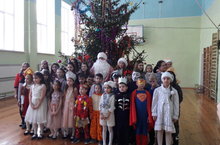 Сегодня в школе прошла Ёлка для ребят 1-7 классов. Ребятишки рассказывали стихи Дедушке Морозу, играли в игру "Снежки", получали подарки за костюмы. Праздник прошел на ура! / Бүген мәктәптә 1-7 сыйныф укучылары өчен Чыршы бәйрәме узды. Балалар Кыш Бабайга шигырьләр сөйләделәр, "Кар бөртекләре" уенын уйнадылар, костюмнар өчен бүләкләр алдылар. Бәйрәм бик күңелле үтте! -