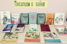 В рамках празднования 74 годовщины Победы в Великой отечественной войне в нашей школе оформлена выставка "Писатели о войне". Чем дальше уходят от нас события Великой Отечественной войны, тем ценнее становятся художественные произведения свидетельства страниц нашей истории. Писатели, журналисты тоже воевали и выполняли свой профессиональный долг. В их произведениях - боль пережитого, преклонение перед героизмом тех, кто отдал свою жизнь за свободу и счастье Родины. / Бөек Ватан сугышында Җиңүнең 74 еллыгын бәйрәм итү кысаларында безнең мәктәптә "Сугыш турында язучылар"дигән күргәзмә оештырылды. Бөек Ватан сугышы вакыйгалары бездән алга таба китә барган саен, тарих сәхифәләренең сәнгать әсәрләре шулкадәр кыйммәтләнә. Язучылар, журналистлар да үзләренең һөнәри бурычларын үтәделәр. Аларның әсәрләрендә-Ватан азатлыгы һәм бәхете өчен гомерен биргән кешеләрнең батырлыгы алдында баш ию темалары чагылды. -