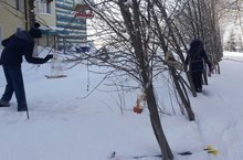 В нашей школе стало доброй традицией приводить в порядок памятники героям Великой Отечественной войны. Учащиеся проявили инициативу и занялись уборкой территории. Дело очень ответственное. Ребята справились с этим непростым заданием: почистили снег, подметали. Приятно было смотреть на работу детей, которые с чувством глубокой ответственности выполняли эту работу, потому что ребята знают, что значит герои Великой Отечественной войны. / Безнең мәктәптә Бөек Ватан сугышы геройларына һәйкәл яннарын җыештыру күркәм традициягә әверелде. Укучылар территорияне җыештырдылар. Эш бик җаваплы. Балалар бу җиңел булмаган биремне үтәделәр: кар чистарттылар, себерделәр. Бу эшне тирән җаваплылык хисе белән башкарган балаларның эшләрен карау күңелле булды, чөнки балалар Бөек Ватан сугышы геройларының кем икәнлеген беләләр.