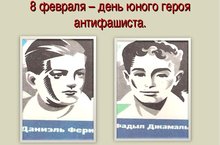 С 1964 года во всём мире отмечается День юного героя-антифашиста. Он был утверждён Международной Ассамблеей ООН в честь погибших на антифашистском митинге в 1962 г. парней: пятнадцатилетнего парижанина Даниэля Фери и иракского борца против насилия в своей стране Фадыла Джамаля, который скончался от пыток в одной из тюрем Багдада в 1963 году. Оба мальчика погибли 8 февраля с разницей в один год. А за 21 год до этого в разных странах мира именно в этот день произошли подобные трагедии. Во Франции были замучены пятеро отважных мальчишек-подпольщиков из Парижа. В Советском Союзе были расстреляны участники краснодонской организации «Молодая гвардия». Именно эти роковые совпадения послужили тому, что день 8 февраля и стал Днём памяти юного героя-антифашиста./ 1964 елдан бөтен дөньяда Яшь герой-антифашист көне билгеләп үтелә. Ул 1962 елда антифашист митингында һәлак булганнар хөрмәтенә БМОның Халыкара Ассамблеясы тарафыннан расланды: унбиш яшьлек парижани Даниэль Фари һәм Ирак көрәшчесе үз илендә көч куллануга каршы, 1963 елда Багдадның бер төрмәсендә җәзалап үтерелгән. Ике малай да 8 февральдә бер елга бер аерма белән һәлак була. Ә моңа кадәр 21 ел дәвамында дөньяның төрле илләрендә нәкъ менә бу көнне шундый фаҗига булган. Франциядә Париждан килгән биш батыр малайның эзе табылган. Советлар Союзында Краснодарда «Яшь гвардия " оешмасында катнашучылар атып үтерелә. Нәкъ менә шушы фаҗигаларның туры килүе 8 февраль көнне антифашист-яшь геройны искә алу көненә сәбәп булды. -