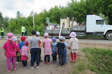 Балаларның юлда йөрү кагыйдәләрен үзләштерү мәсәләсендә һәр мөмкинлек белән файдаланып калырга тырышабыз. Шул очраклый бүген балаларыбыз юл эшчеләре артыннан күзәтү алып бардылар. Пользуясь любым представившимся случаем, стараемся обогатить знания своих воспитанников касательно правил дорожного движения и безопасного поведения на дороге. Сегодня мы наблюдали за работой дорожной службы по нанесению разметки на дорожное полотно.