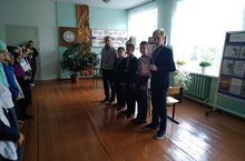 1-4 сыйныф укучылары алдында хезмәт ветераны Вәлиәхмәтов Таһир Файзиевич чыгыш ясады. Ул бик мавыктыргыч итеп Бөек Ватан Сугышынының төп эпизодлары турында сөйләде.