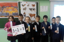 Сегодня в 1 классе прошёл "Час весёлой математики". Дети играли, соревновались, с пользой провели это время.