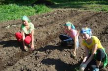 В субботу на пришкольном участке посадили огурцы, кабачки.