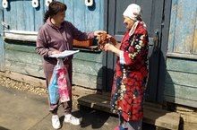 Раздача поздравительных открыток и подарков ветеранам и вдовам ВОВ, ветеранам тыла и детям войны.