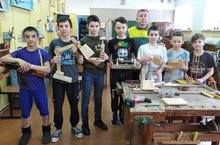 На кружке "Я - мастер" было проведено мероприятие "Самоделкин", где ребята представили свои работы: настольную лампу, трещетку болельщика, карандашницу, электродвигатель на магнитах, деревянную игрушку "Гимнаст на турнике", звонок - дятел, автомат, игрушку "Курочки" и др. Работа "Звонок - дятел" прошел в финал Всероссийского конкурса "Русская игрушка". Руководитель кружка учитель технологии Губайдуллин Фарид Габдельнурович.