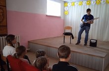 Безнең мәктәп укучысы Тихомиров Олег балалар алдында зур булмаган концерт белән чыгыш ясады. Балалар в.Цой һәм башка музыкантларның рок-музыкасы, иҗаты белән таныштылар. Без гитарада уйнадык, Олег башкаруындагы җырларны тыңладык. Концерттан соң ул балаларның сорауларына җавап бирде һәм аларга тормышта кирәк булачак берничә киңәш бирде.