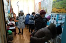 Ата-аналар мәктәпнең туган якны өйрәнү музеенда булдылар. Анда авыл, мәктәп тарихы, төрле экспонатлар, фотолар, альбомнар һәм « Бөек Җиңүгә – 75 ел”, “ТАССРга 100ел” дигән тематик күргәзмәләр белән таныштылар.