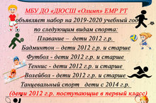 С мая по сентябрь 2019 года спортсмены спортивной школы «Олимп» принимали участие в Первенстве Республики Татарстан по футболу среди детско-юношеских команд Дивизион «Б» в трех возрастных категориях: 2007г.р., 2005г.р., 2004г.р. Игры проходили в два круга, всего от нашей школы приняли участие 50 спортсменов. В возрастной категории 2004г.р. среди 8 команд, наша команда заняла 6 место (тренер Ахметов Н.М.). В возрастной категории 2005г.р. среди 7 команд, наша команда заняла 2 место (тренер Денисенко Д.Б.). В возрастной категории 2007г.р. среди 13 команд, наша команда заняла 2 место (тренер Денисенко Д.Б.)