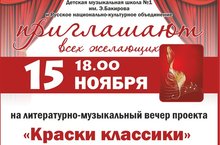 18 октября в Детской музыкальной школе N1 им. Э.Бакирова состоялся литературно-музыкальный вечер проекта «Краски классики» «В.Я.Шишков и И.С.Шмелев и музыкальная культура второй половины 19 века». 18.10.2018