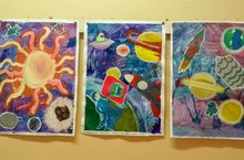 В преддверии праздника Международного Дня авиации и космонавтики и 60-ти летия со Дня полета первого космонавта планеты Земля Юрия Алексеевича Гагарина, юные художники 9-10 лет преподавателя Архиповой С.Г. отразили в работах свой взгляд на космическое пространство. Выставка " На пыльных дорожках..." расположилась на первом этаже ДХШ №1 им. И. И. Шишкина. В создании рисунков были использованы техники: создание фактурного фона акварелью при помощи целофанового пакета, гуашевая живопись и аппликация.Халыкара авиация һәм космонавтика көне алдыннан һәм планетаның беренче космонавты Юрий Алексеевич Гагаринның очу көненә 60 ел тулу алдыннан яшь рәссамнар 9-10 ел Архипова С.Г. эшләрдә үзләренең космик киңлеккә карашларын чагылдырдылар.