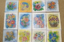 На выставке обучающихся 2-Б и 4-Б классов (преподаватель Артамонова А.Г.) представлены творческие работы в технике батик. Цветочные фантазии детей являются замечательным подарком мамам и бабушкам к 8 Марта.